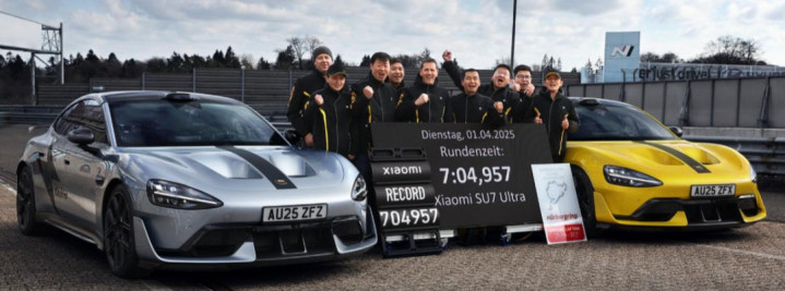 几乎是在同时,小米 SU7 Ultra 的量产版车型也同样刷新了纽北纪录,用 7 分 04 秒 957 超越了魏斯阿赫套件的保时捷 Taycan GT ,成了纽北最快的量产电动车。